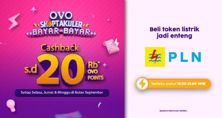 Gaes jangan nunggu bunyi bip..bip..bip baru beli token listrik. Beli di OVO pasti hemat deh karena ada promo Cashback s.d. 20.000 OVO Points. Psst, promo Berlaku setiap hari Selasa, Jumat, dan Minggu selama bulan September pukul 15.00-21.00 WIB aja ya!