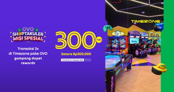 Gaspol ajak keluarga atau teman-teman buat seru-seruan main di Timezone dan bayar pake OVO sebanyak 2x untuk raih rewards spesial 300 Tizo (setara Rp300.000).