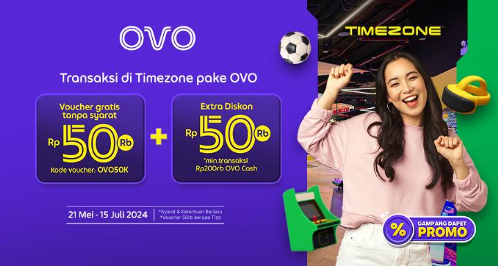 Kamu juga bisa dapet tambahan diskon Rp50.000 dengan minimal transaksi Rp200.000 aja! Jangan lupa, pake kode voucher OVO50K dan gas seru-seruan di Timezone pake OVO sekarang dan raih promonya!