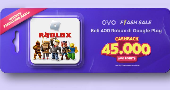 Buat kamu pengguna baru OVO, dapetin cashback 45.000 OVO Points kalo beli minimal Rp 90,000 di Google Play atau di Web Roblox