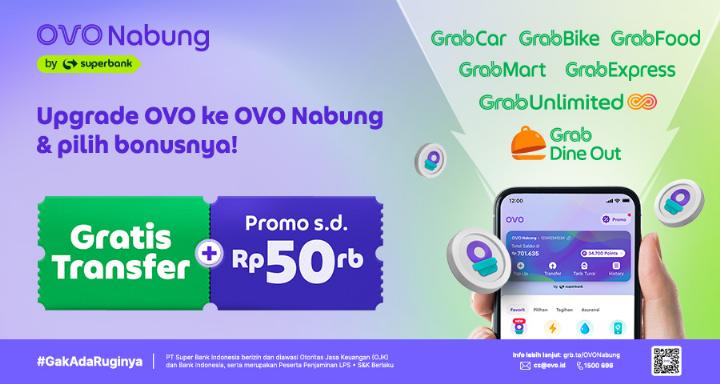 Rek-wallet OVO Nabung, rekening e-wallet dari OVO dan Superbank yang bikin kamu bisa nabung sekaligus transaksi harian dengan simpel. Upgrade OVO mu ke OVO Nabung dan dapetin GRATIS transfer kemana aja!