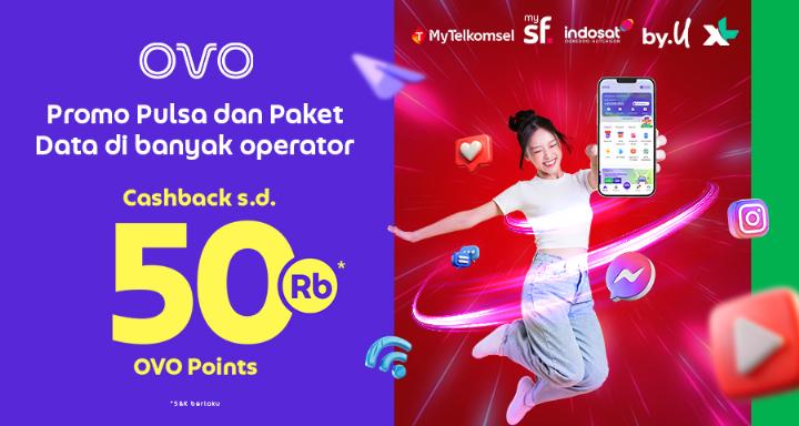 - Cashback hingga 10.000 OVO Points dengan minimal transaksi Rp20.000 menggunakan OVO Cash. Periode 1 - 30 April 2026. Khusus pengguna baru OVO di MyTelkomsel.