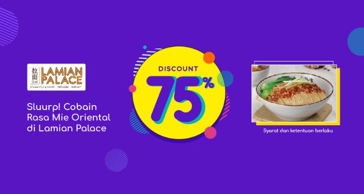 Makan enak, siapa yang mau nolak? Nikmati lezatnya mie khas Lamian Palace, yuk! Ada promo diskon 75% hingga Rp17.000 per item. Gak cuma mienya aja, banyak menu lain yang gak kalah enaknya, lhoo: