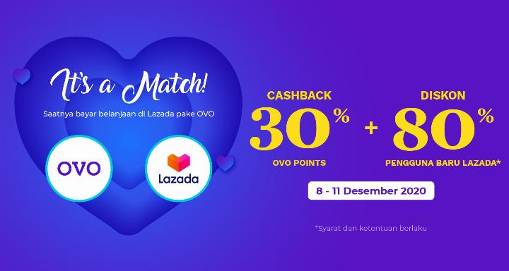 Mulai dari tanggal 8-11 Desember 2020, bayar belanjaan di Lazada pake OVO dijamin jadi lebih hemat! Soalnya kamu bisa dapetin Cashback 30% dan tambahan Diskon 80% untuk pengguna baru Lazada! Gokil banget kan promo LazadaXOVO? Cusss buruan belanja semua kebutuhanmu di Lazada Cukup #pakeOVOaja