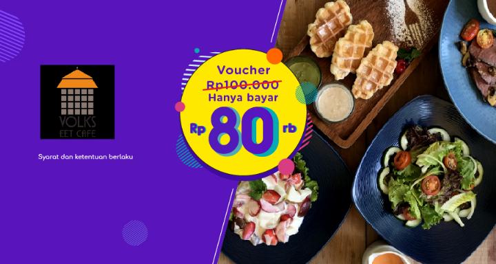 Siapa yang mau ngopi dan cemal-cemil santai? Ke Volks Eet Cafe aja! Suasananya adem, makanan & minumannya juga enak! Beli Voucher Rp100.000 cukup dengan harga Rp80.000 aja di aplikasi OVO. Jangan lupa jaga protokol kesehatan ya!
