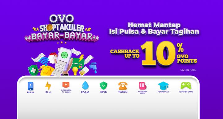 - Cashback 10% maks. 20.000 OVO Points/transaksi/user/periode promo untuk pembayaran pasca bayar