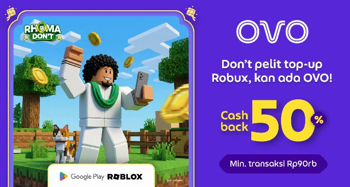 Yuk, top-up Robux-mu pake OVO & dapetin cashback s.d. 50% (min. transaksi 90.000)