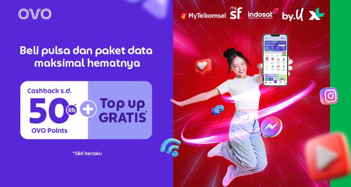 Tapi sekarang waktunya comeback, soalnya OVO lagi ngasih gratis top up + cashback s/d 50rb OVO Points buat beli pulsa & paket data di MyTelkomsel, Indosat Ooredoo, XL Prepaid, By.U, atau MySF.